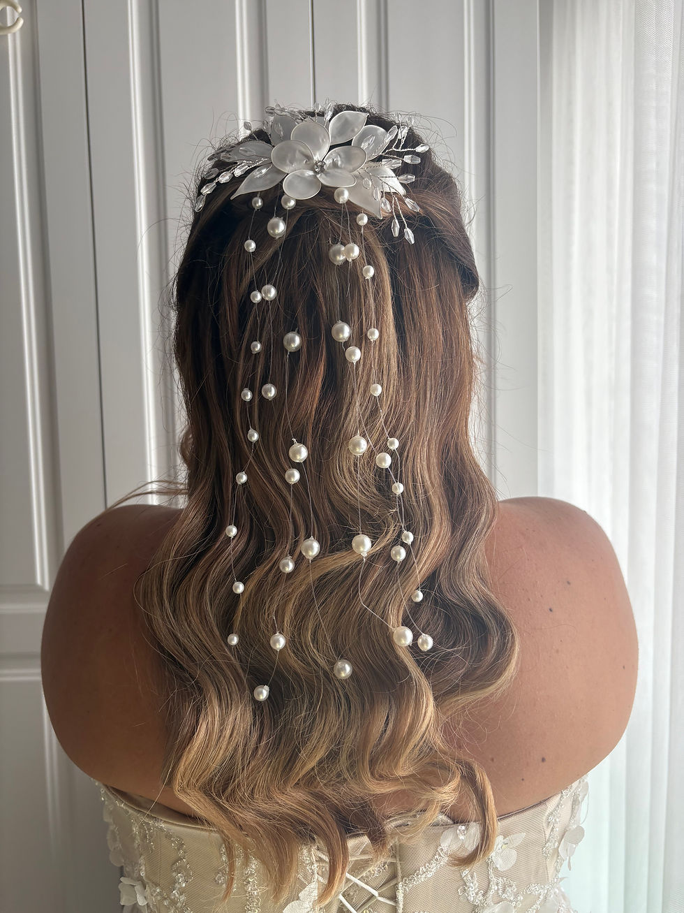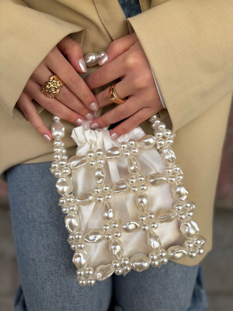 Modern çizgiler ve göz alıcı bir inci paleti. Fiora, dört farklı inci boncuktan oluşan zarif dokusu ve sapındaki çiçek detayıyla minimal tasarımı romantik bir stil ile buluşturur. Elde taşınabilir formu, hem özel günlerde hem de günlük kombinlerde şıklığınıza eşlik eder.
